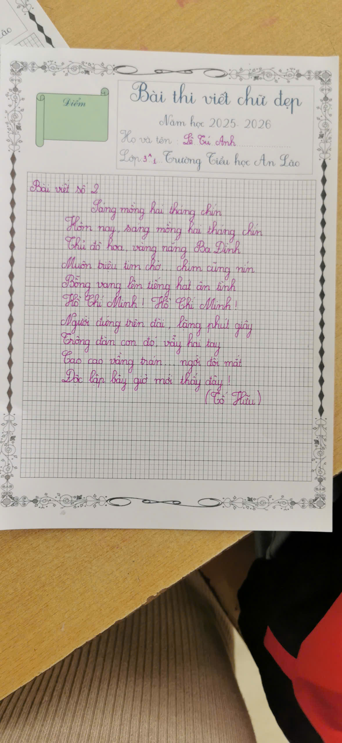 Nhằm rèn luyện cho học sinh thói quen viết chữ đúng, đẹp; góp phần giữ gìn và phát huy nét đẹp của chữ viết tiếng Việt, Trường Tiểu học An Lão, xã Bình Sơn, tỉnh Ninh Bình đã tổ chức Hội thi Viết chữ đẹp cấp trường năm học 2025 – 2026. Hội thi thu hút sự tham gia của nhiều học sinh tiêu biểu đến từ các khối lớp trong toàn trường.