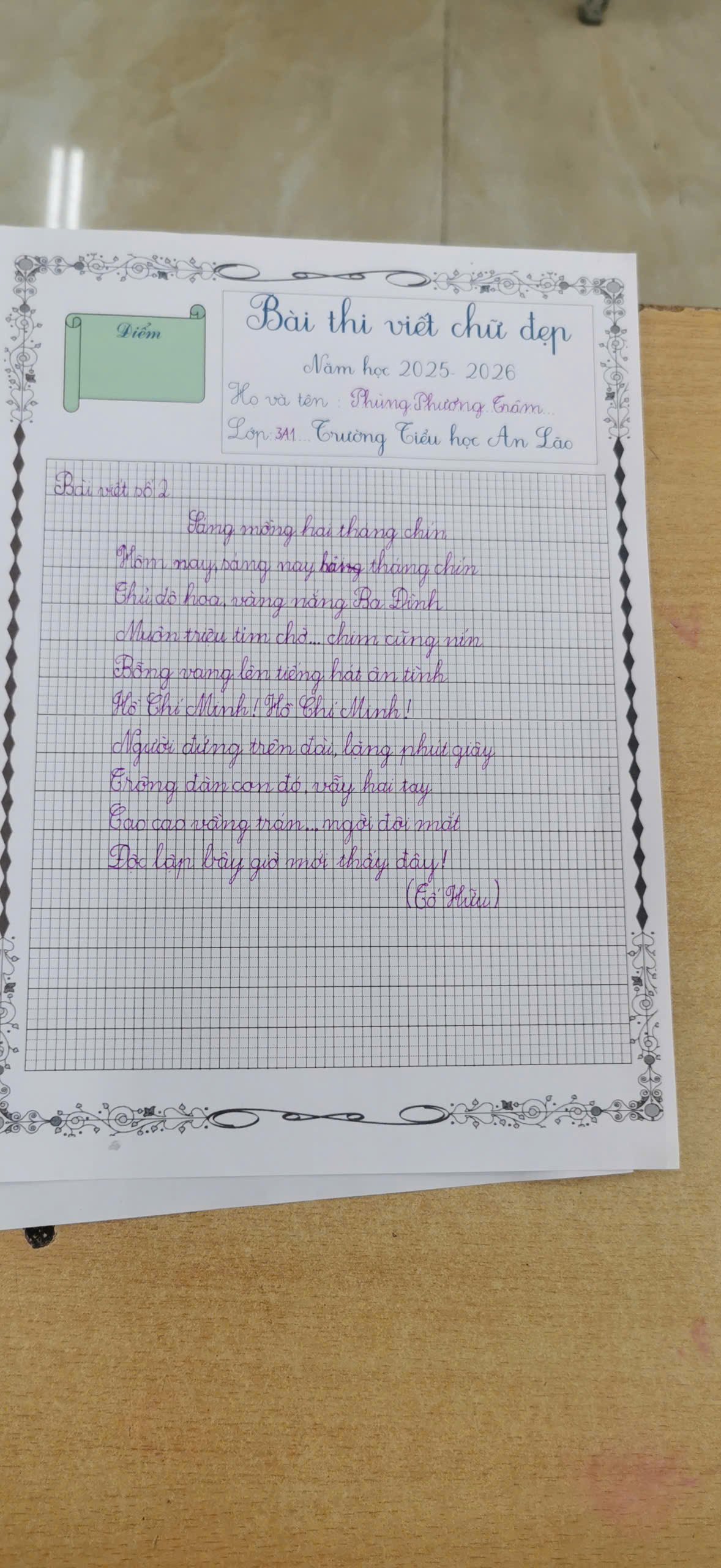 HỘI THI VIẾT CHỮ ĐẸP CẤP TRƯỜNG NĂM HỌC 2025 – 2026